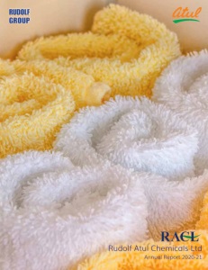 Company Overview Financial Statements Notice Statutory Reports 01 Rudolf Atul Chemicals Ltd | Annual Report 2020-21 Corporate Identity Rudolf Atul Chemicals Ltd is a 50-50 joint venture company of Rudolf GmbH and Atul Ltd, engaged in manufacturing and marketing of textile chemicals in India. The Company is effectively leveraging the strengths of Rudolf and Atul in serving its customers by becoming a total solution provider and is thereby helping both the partners to participate in the growing marketplace. About Rudolf GmbH Incorporated and headquartered in Germany, Rudolf GmbH has 28 subsidiary and joint venture companies in various countries in the world so as to effectively service local customers. The Group is engaged in the business of ‘specialty’ textile chemicals and offers a full range of technically proven textile chemicals - its motto is ‘Think global, act local!’ It has an excellent brand image in international markets - its brands stand for extraordinary functional finishes and finishing processes. About Atul Ltd Incorporated and headquartered in India, Atul Ltd is a diversified company belonging to Lalbhai Group. The Company meets the needs of varied industries such as Adhesives, Agriculture, Animal Feed, Automobile, Composites, Construction, Cosmetic, Defence, Dyestuff, Electrical and Electronics, Flavour, Food, Footwear, Fragrance, Glass, Home Care, Horticulture, Hospitality, Paint and Coatings, Paper, Personal Care, Pharmaceutical, Plastic, Rubber, Soap and Detergent, Sport and Leisure, Textile, Tyre and Wind Energy. It manages complex chemical processes in a responsible way.